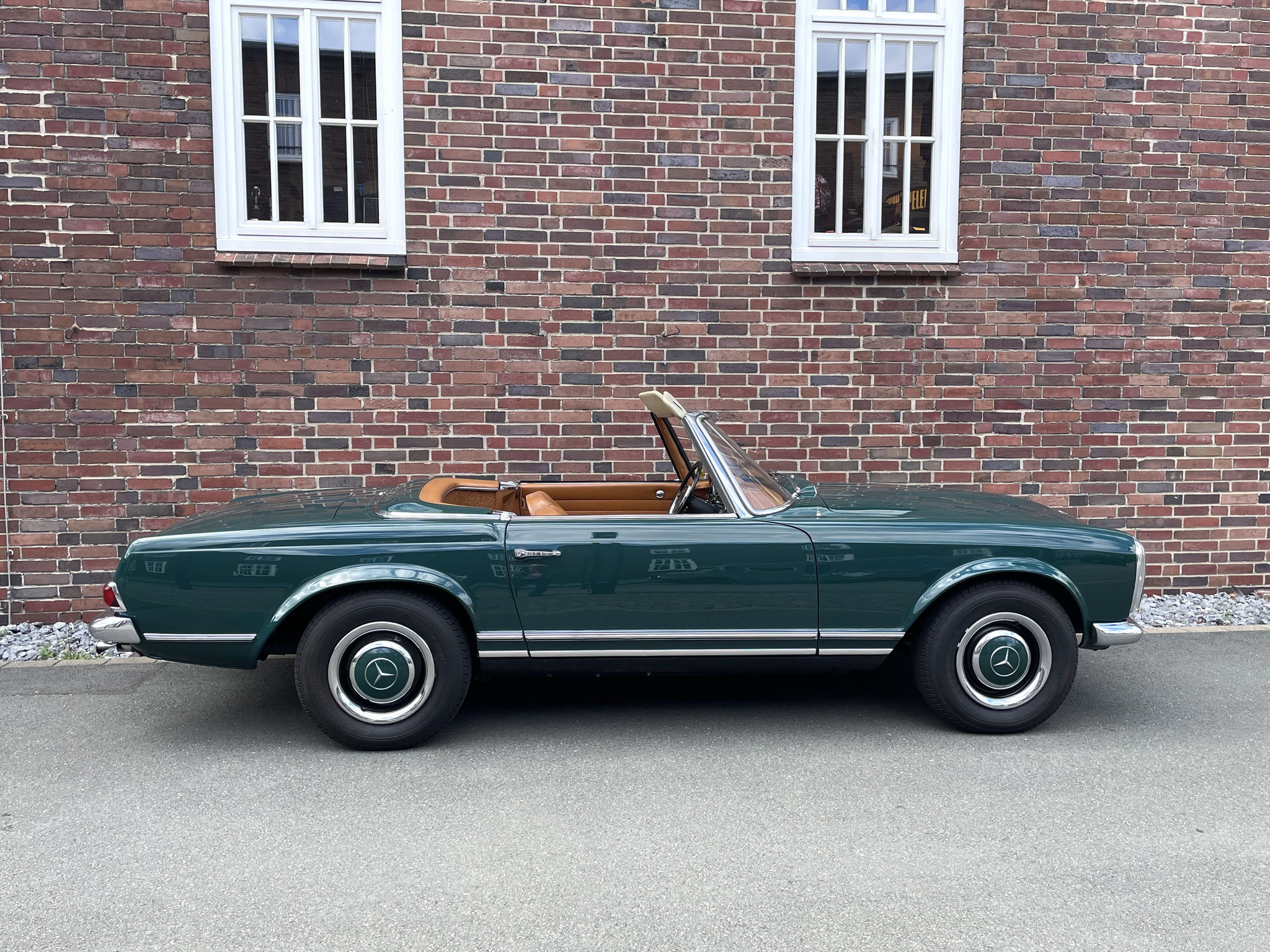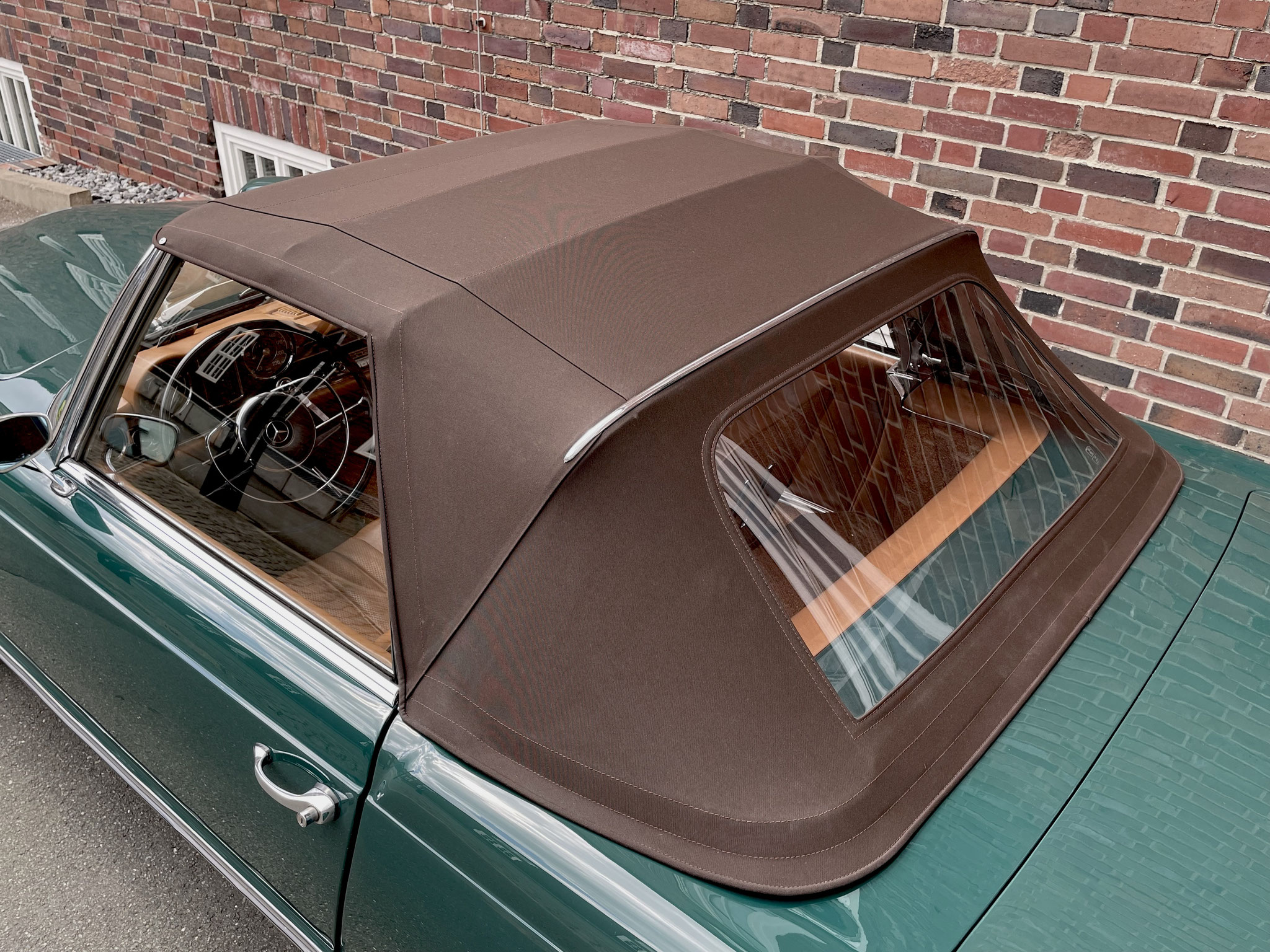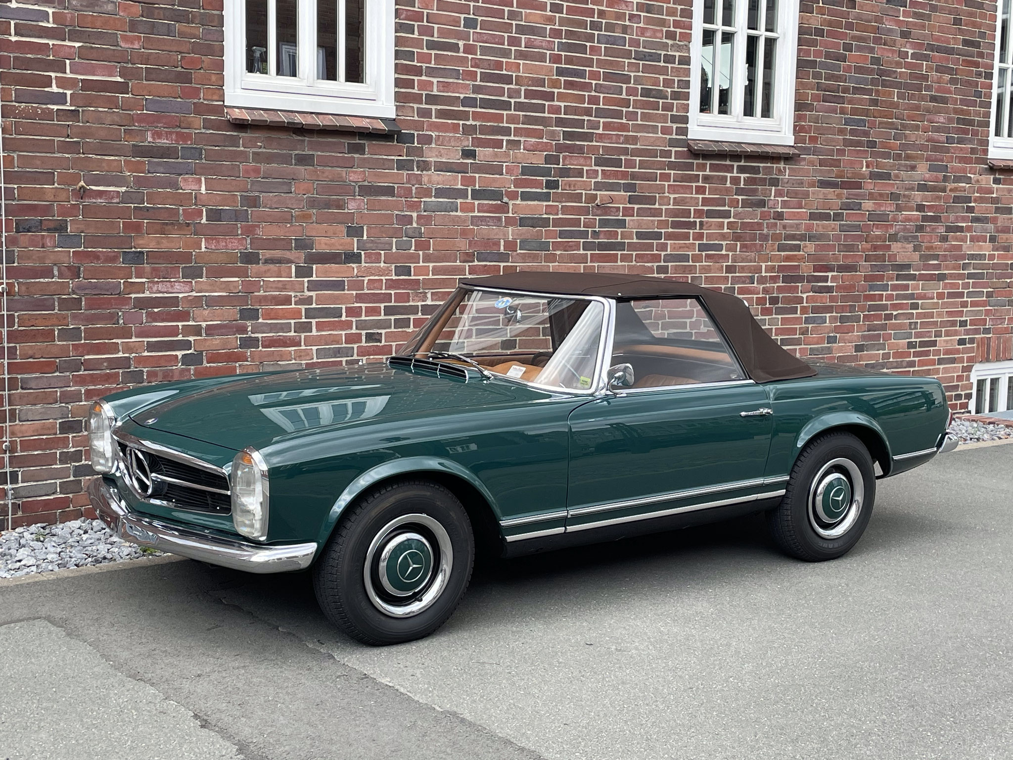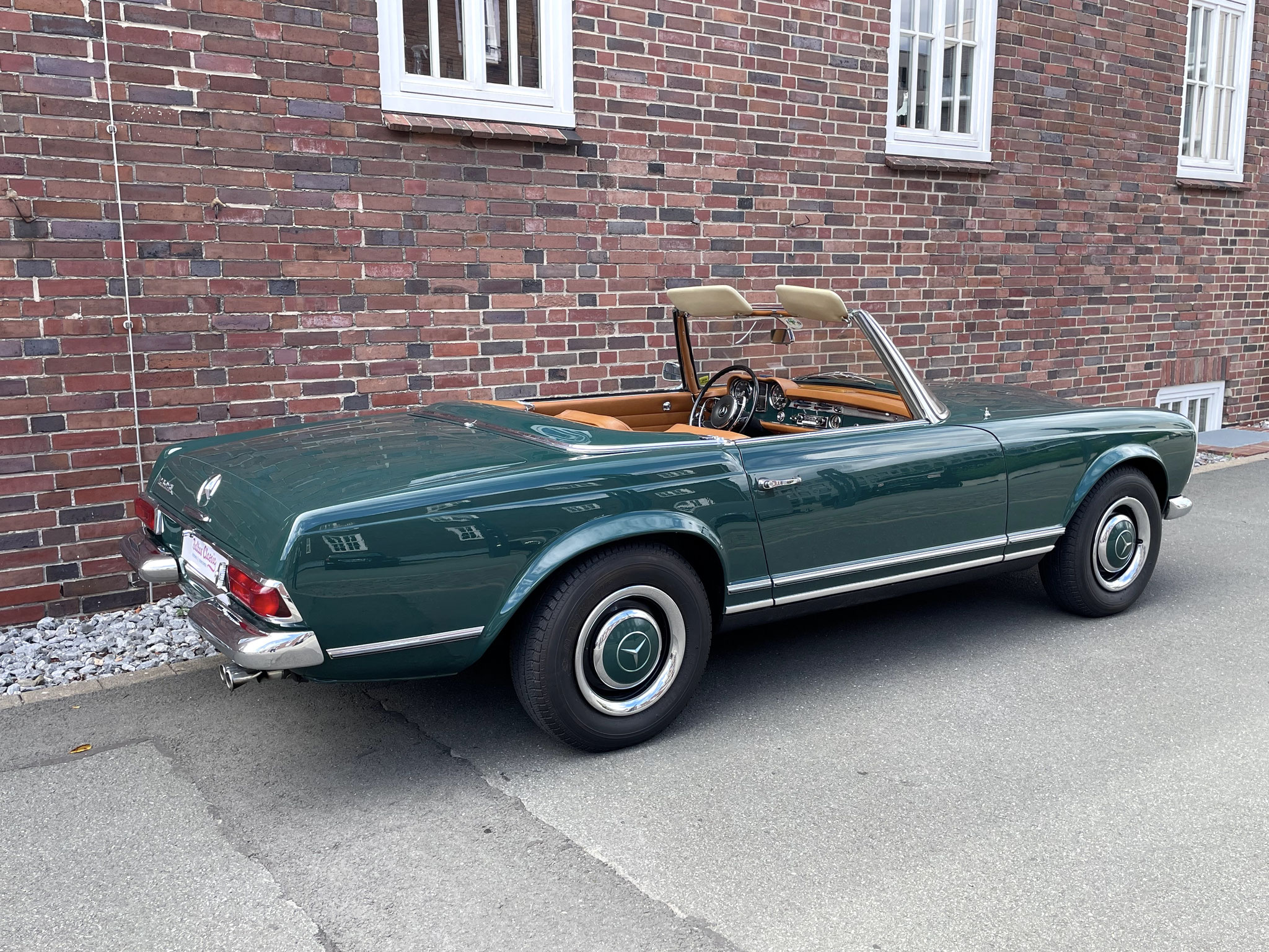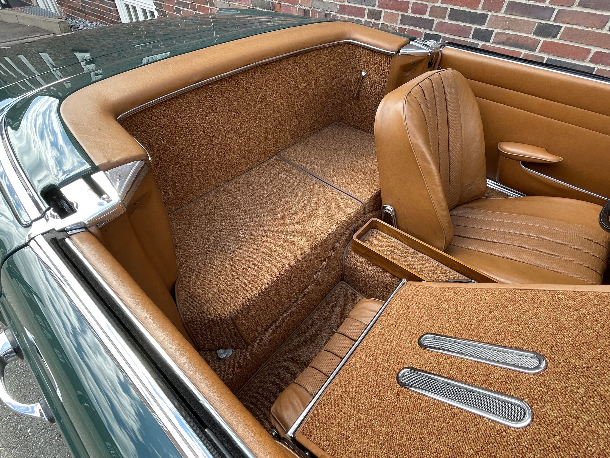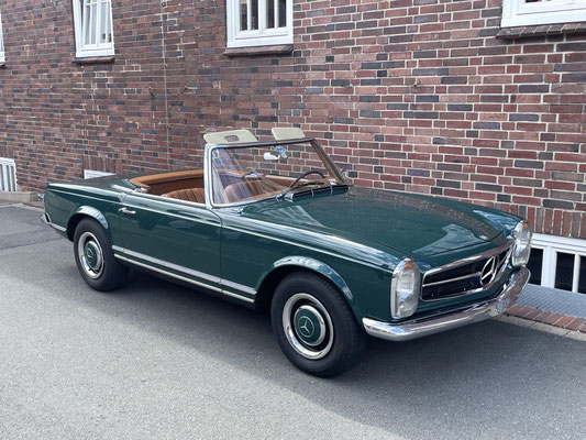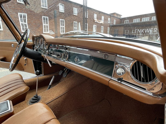 originalen Farbe. 2018 hat die Pagode ein neues Verdeck bekommen, natürlich eines in guter Qualität aus Sonnenland Verdeckstoff. Außerdem wurde ein komplett neuer Teppichsatz
