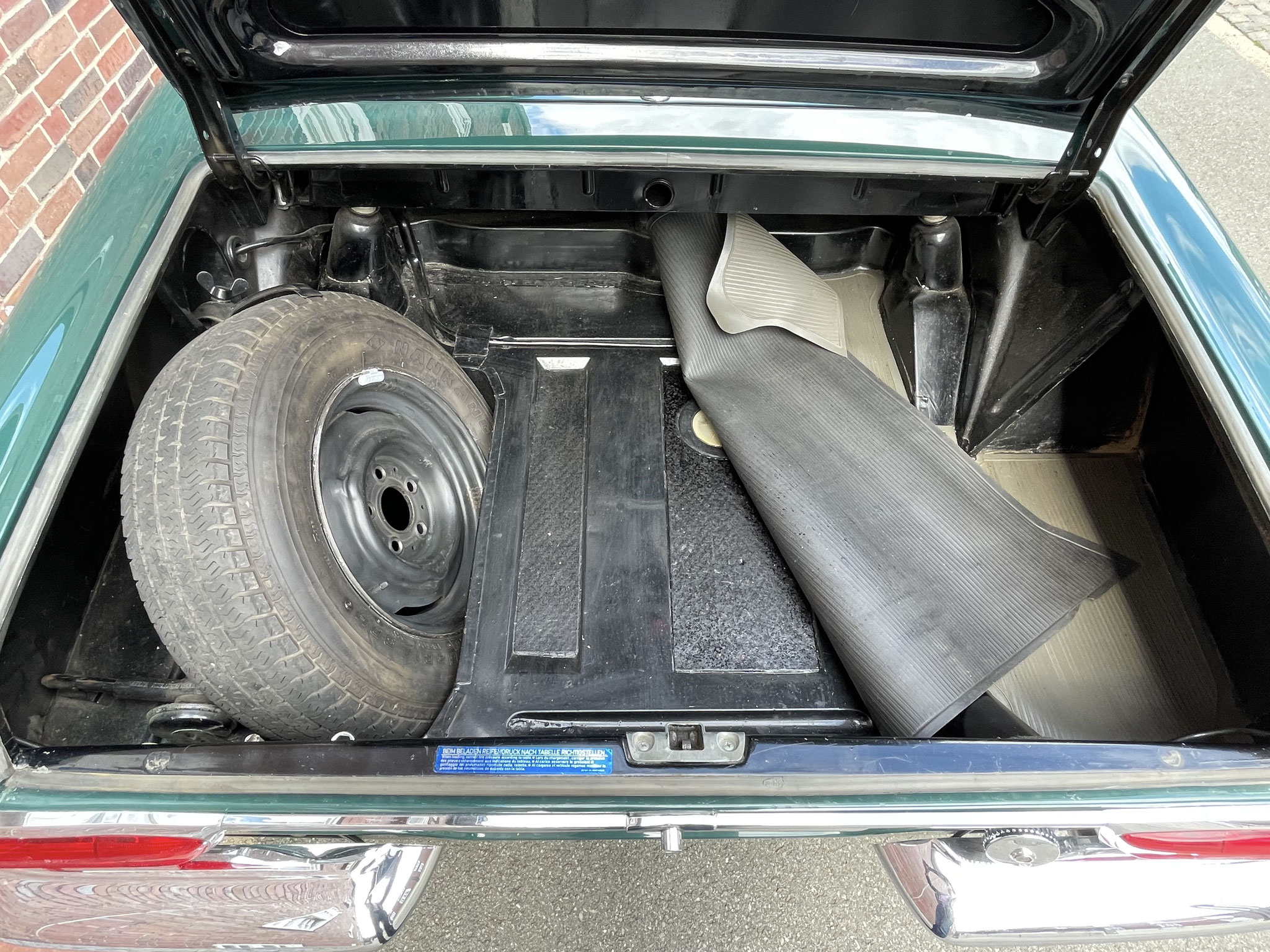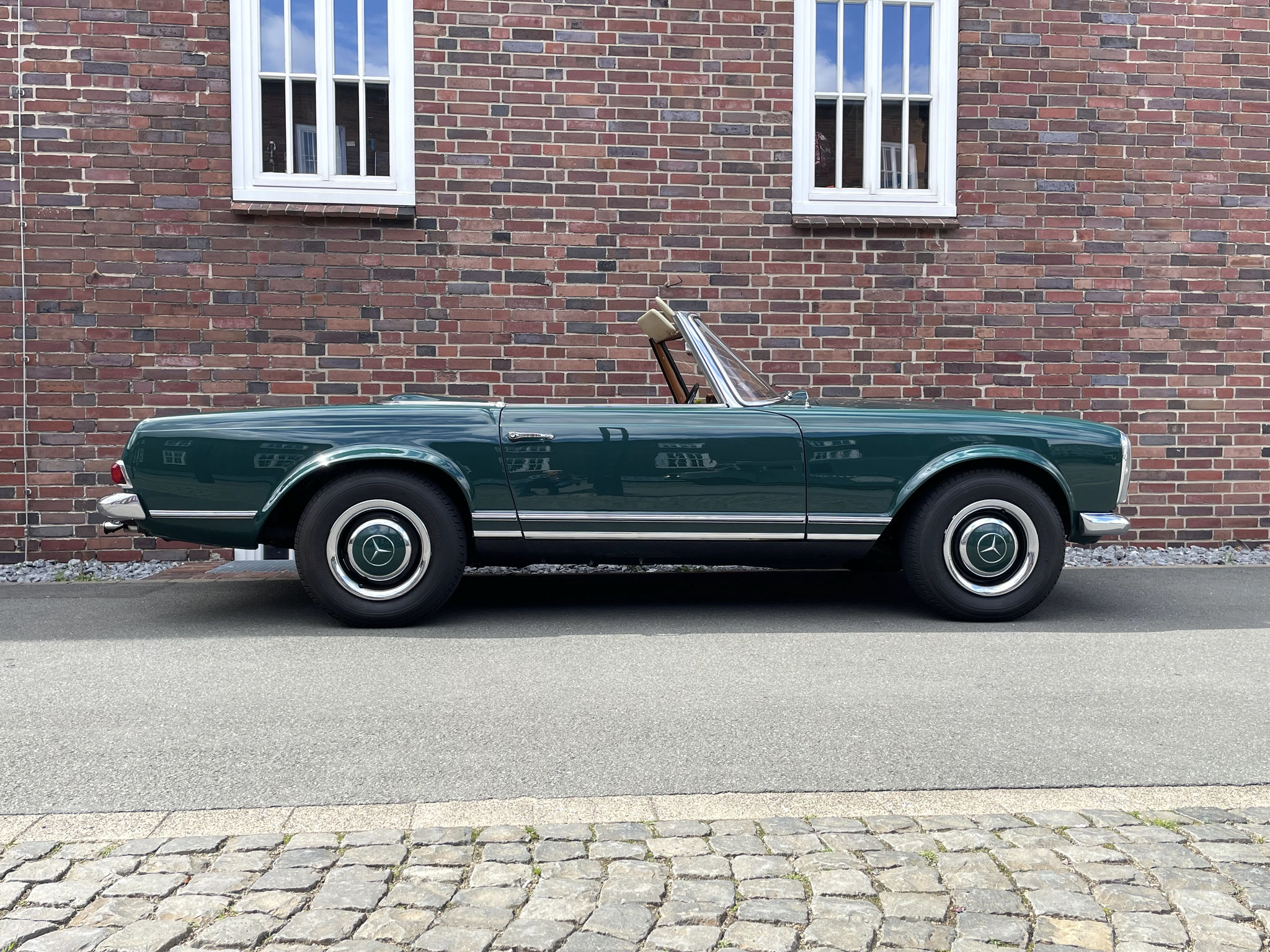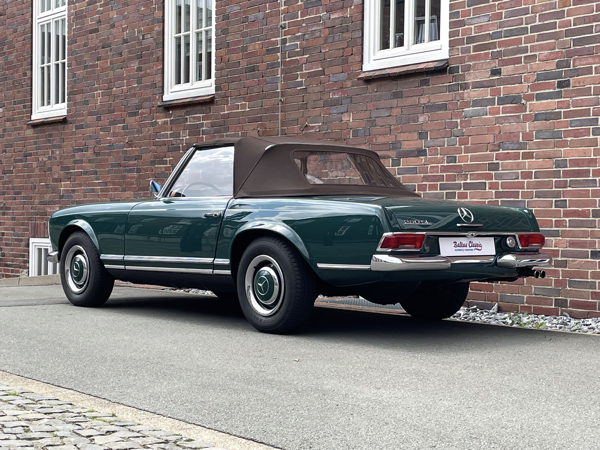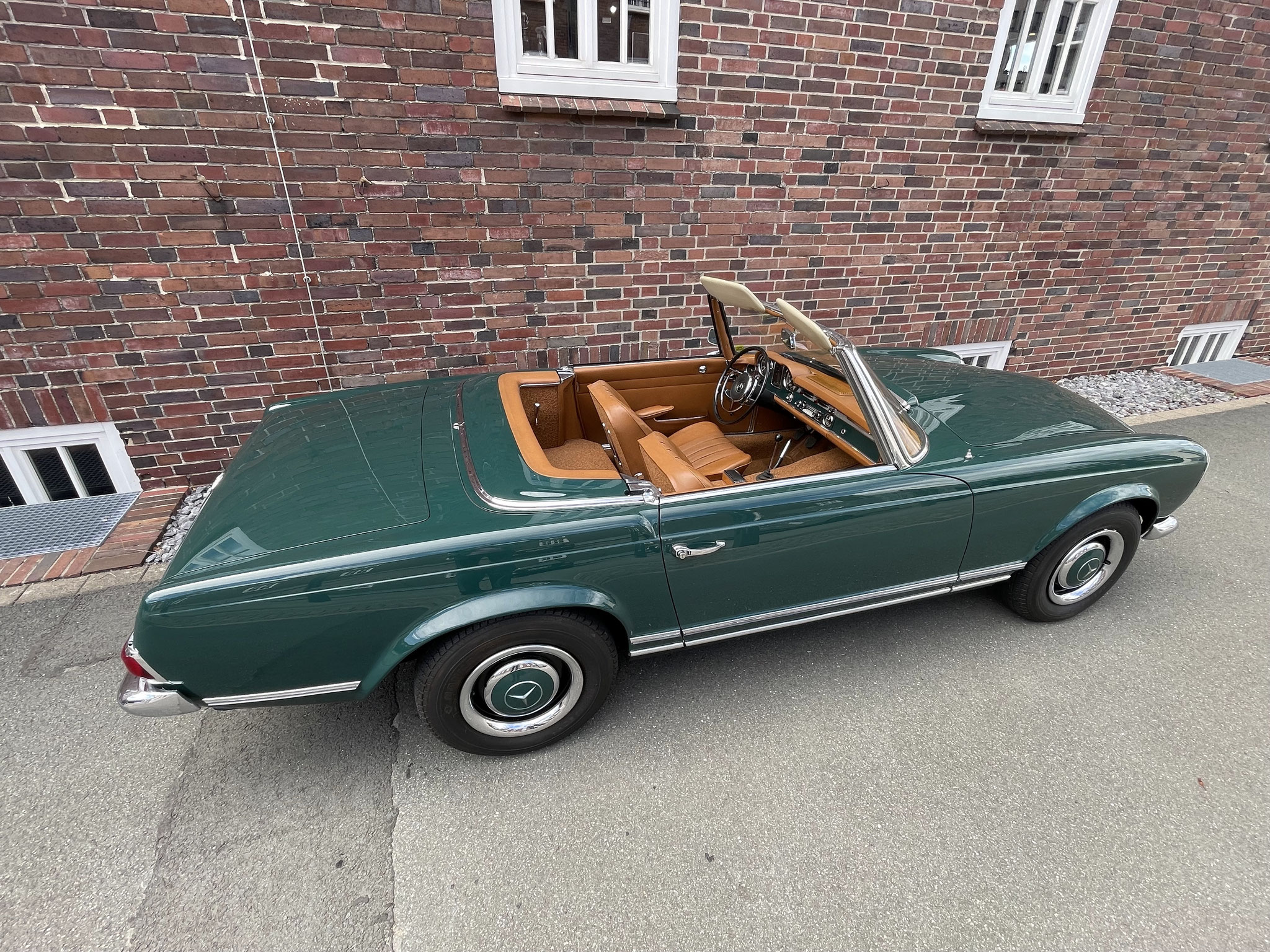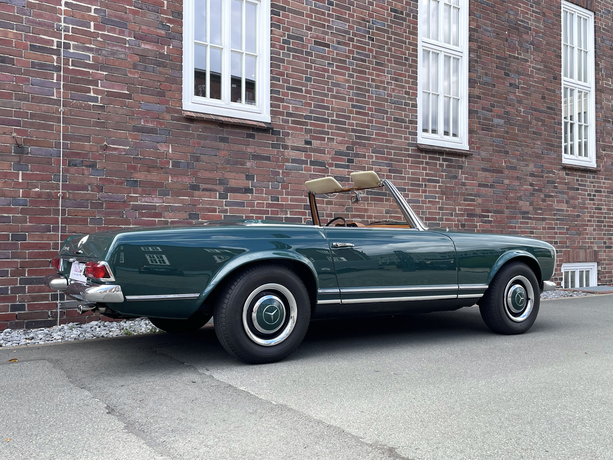 originalen Farbe. 2018 hat die Pagode ein neues Verdeck bekommen, natürlich eines in guter Qualität aus Sonnenland Verdeckstoff. Außerdem wurde ein komplett neuer Teppichsatz