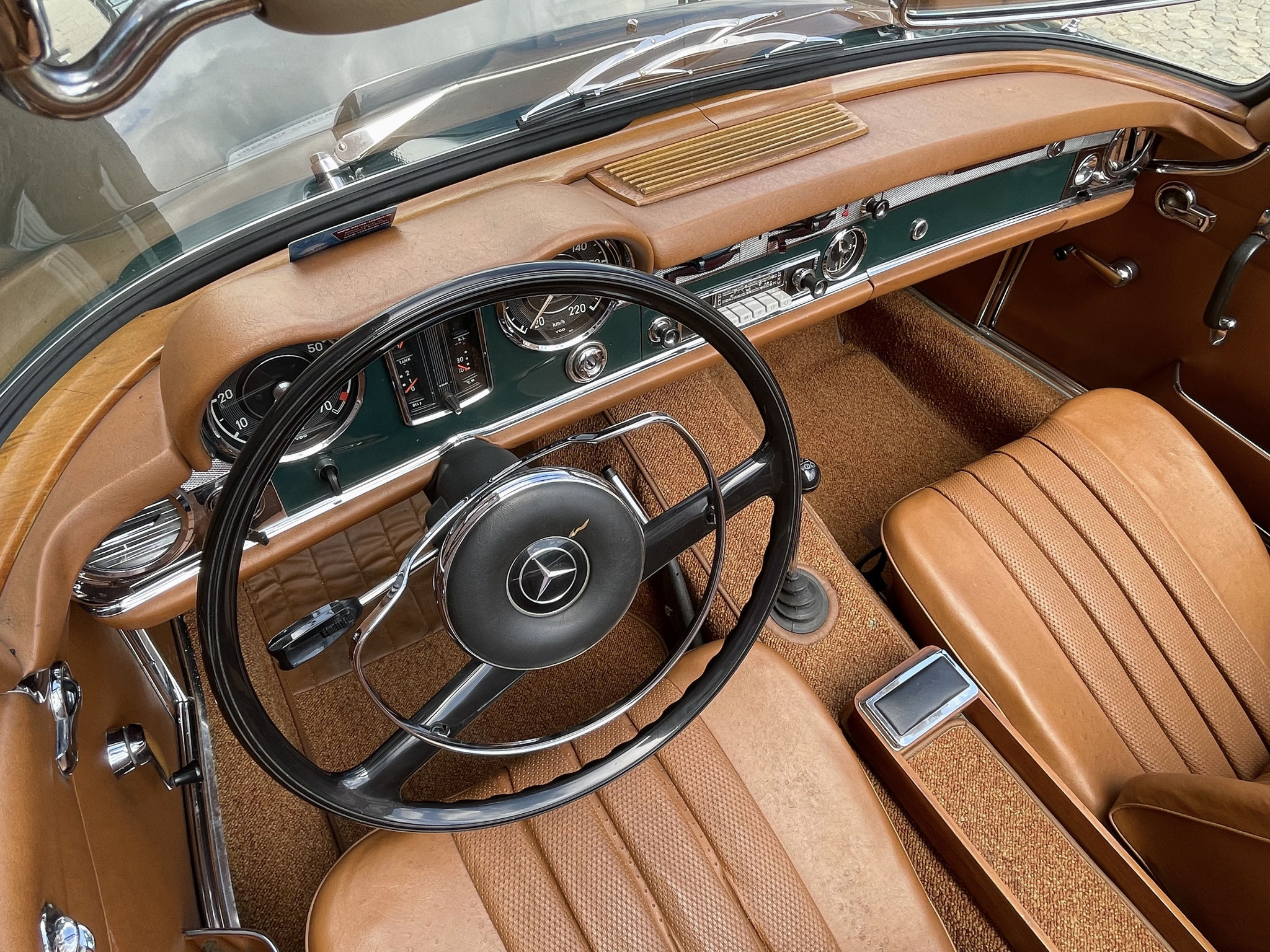 – 1964 entschied sich der Erstbesitzer aus Coburg zum Kauf eins neuen Mercedes SL. Er bestellte sich einen SL der Baureihe W113 als 230 SL mit 150 PS. Bei der