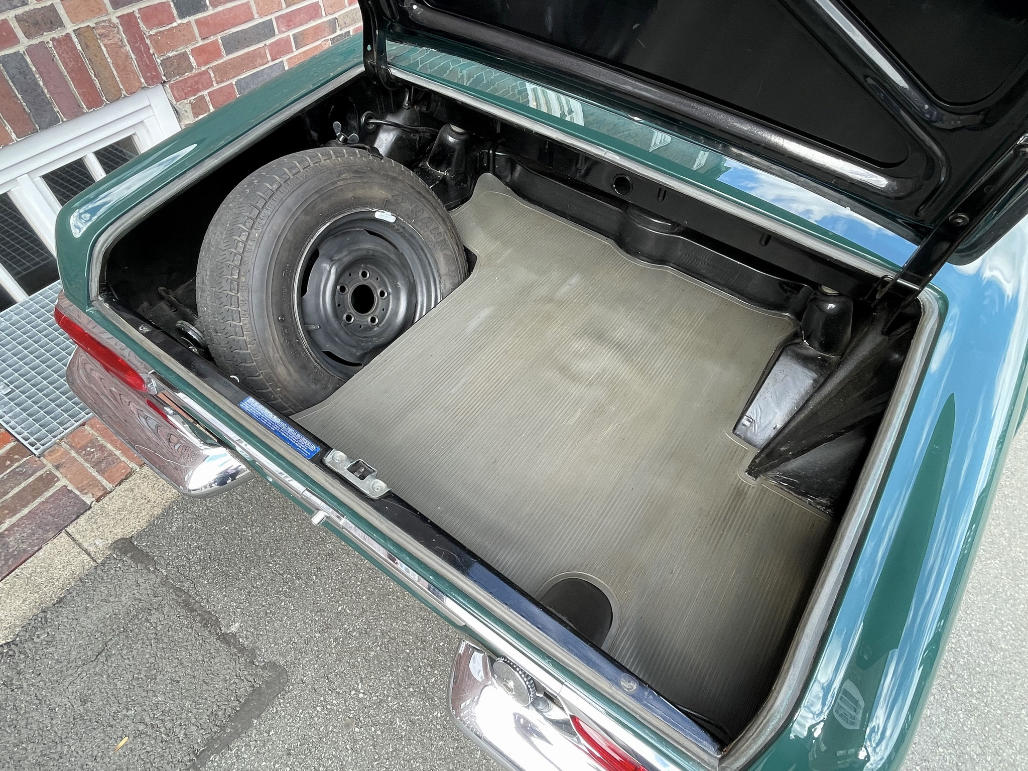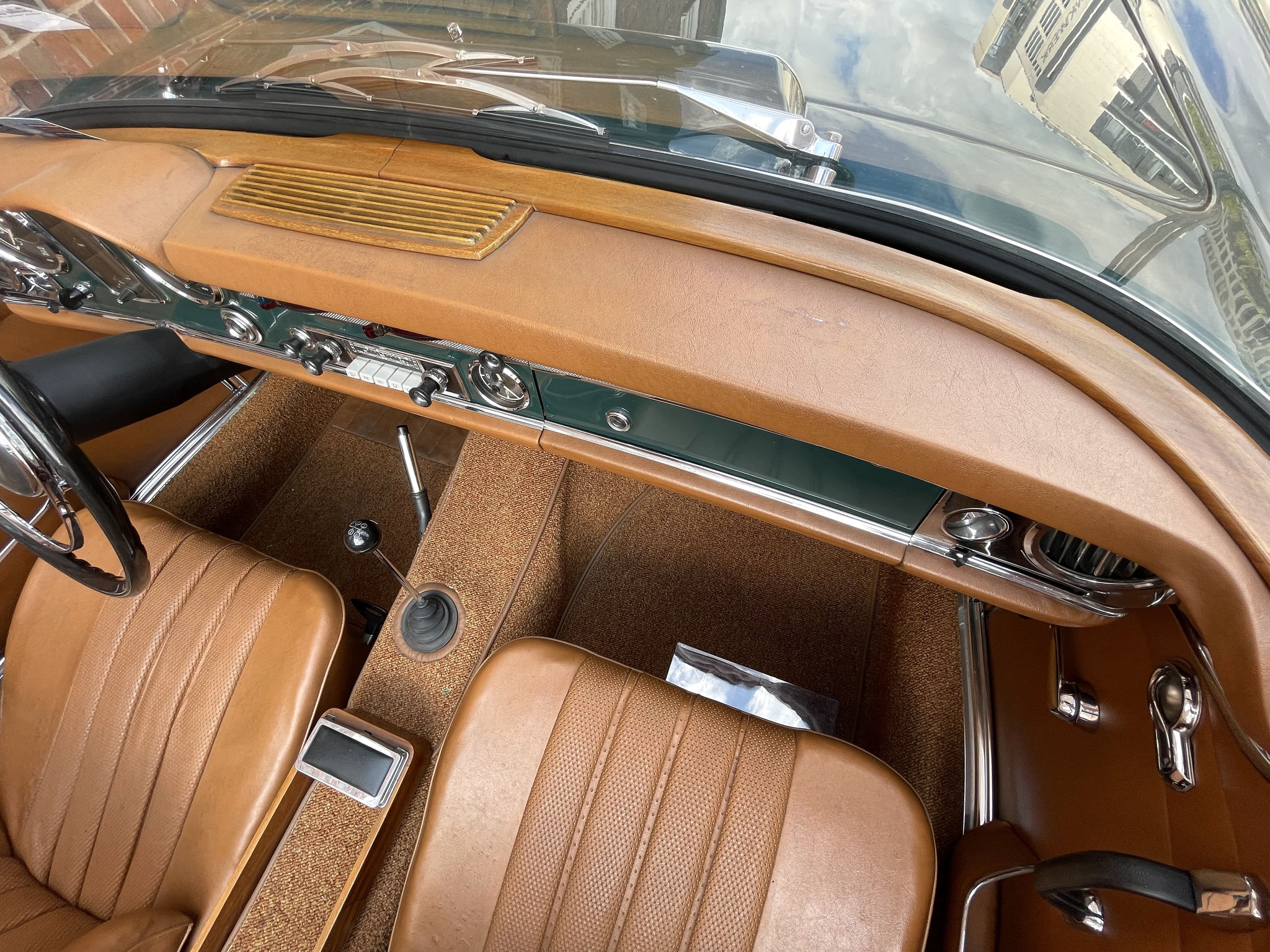 Lackierung entschied er sich für eine klassische Farbkombination, Karosserie in Dunkelgrün (Blaugrün) mit einem Hardtop in Schwarz und einer beigebraunen Innenausstattung.