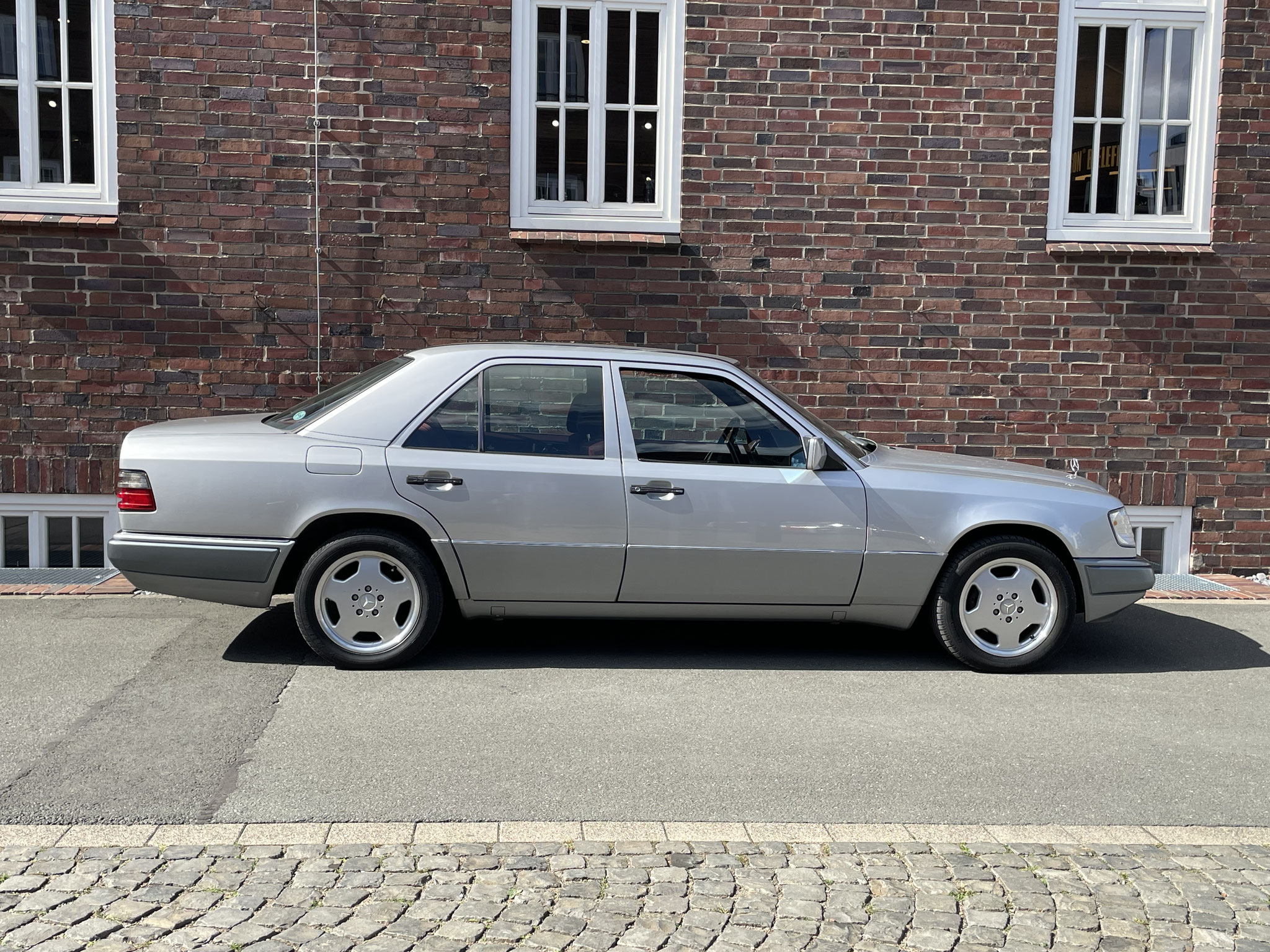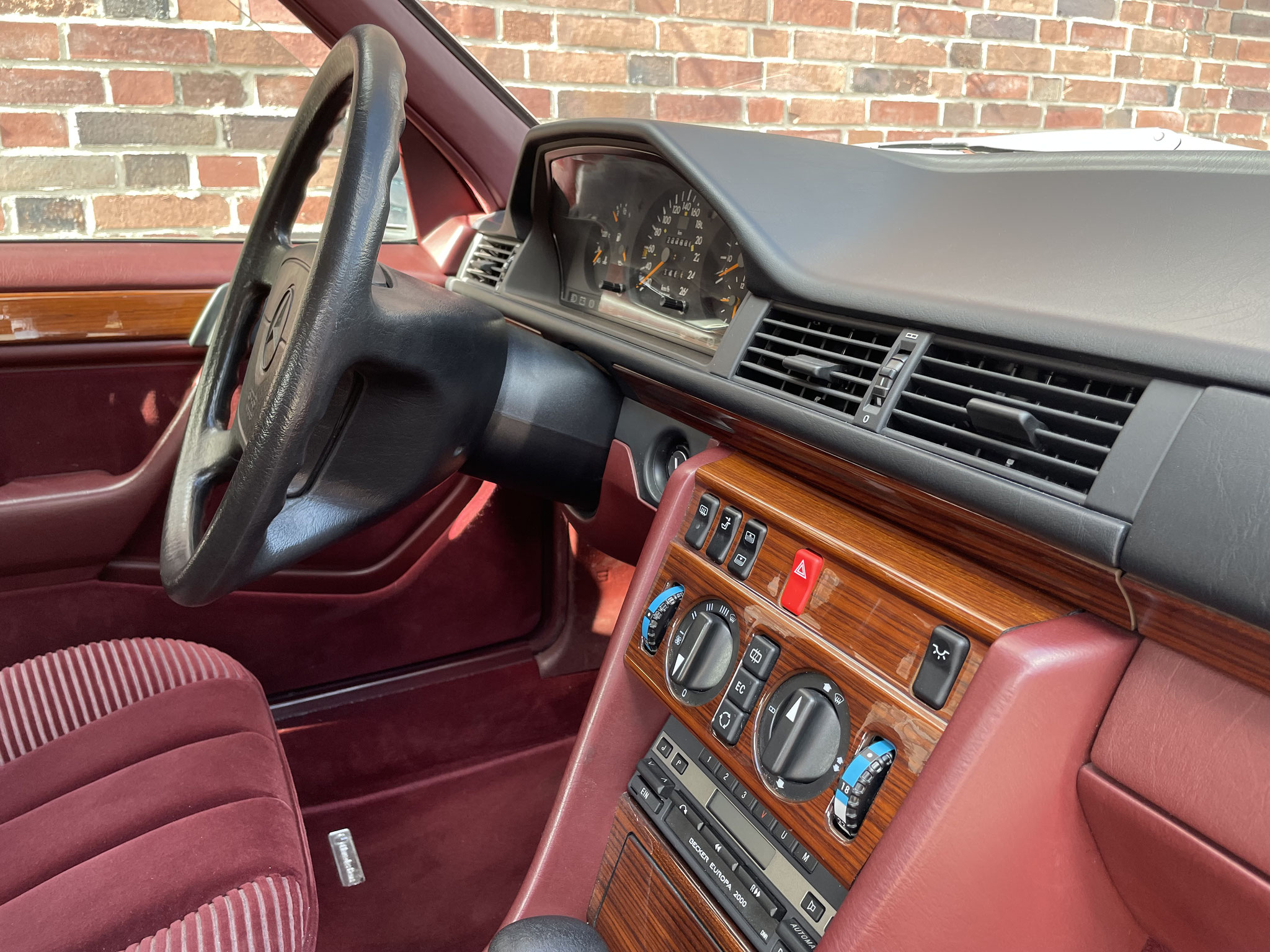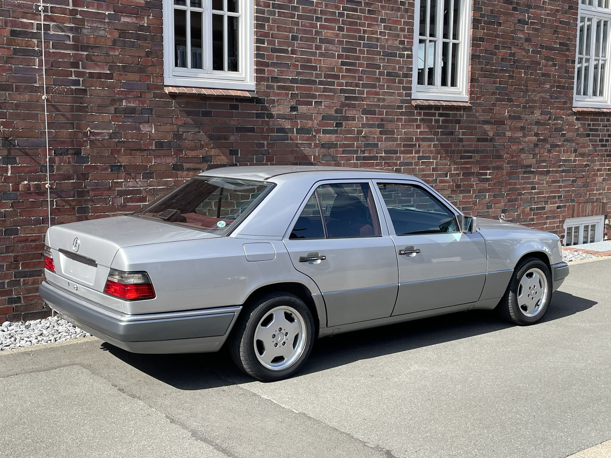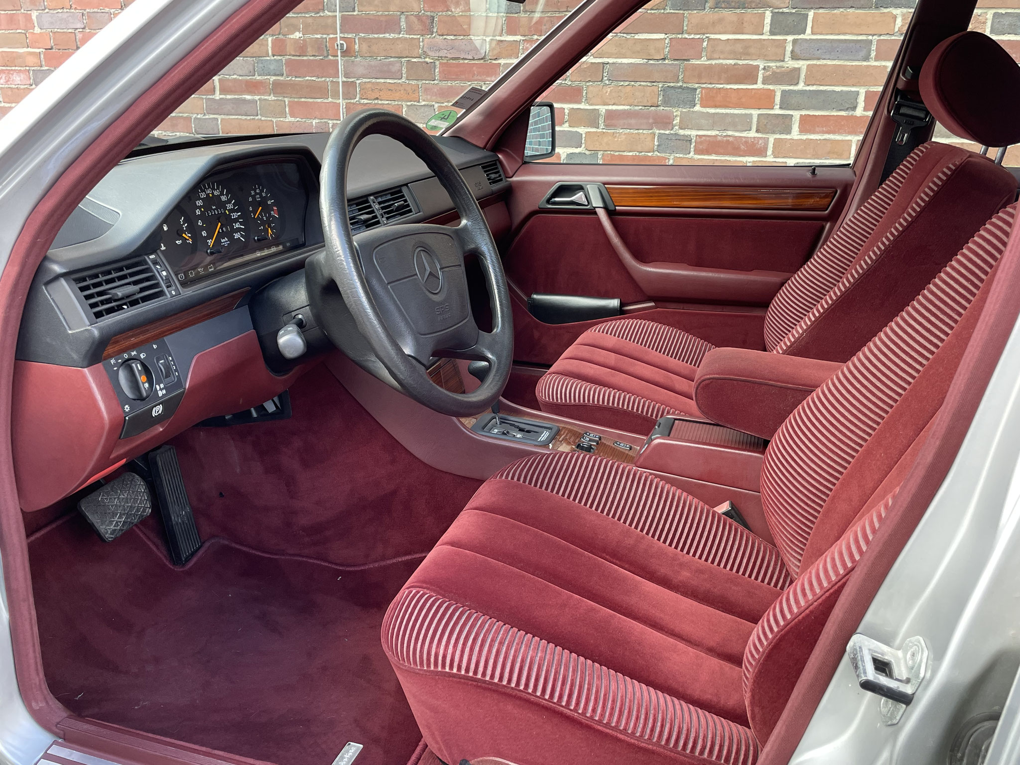 – Von außen dezent und klassisch in Brillantsilber, präsentiert sich dieser 124er von innen außergewöhnlich und selten mit einer roten Velourausstattung.