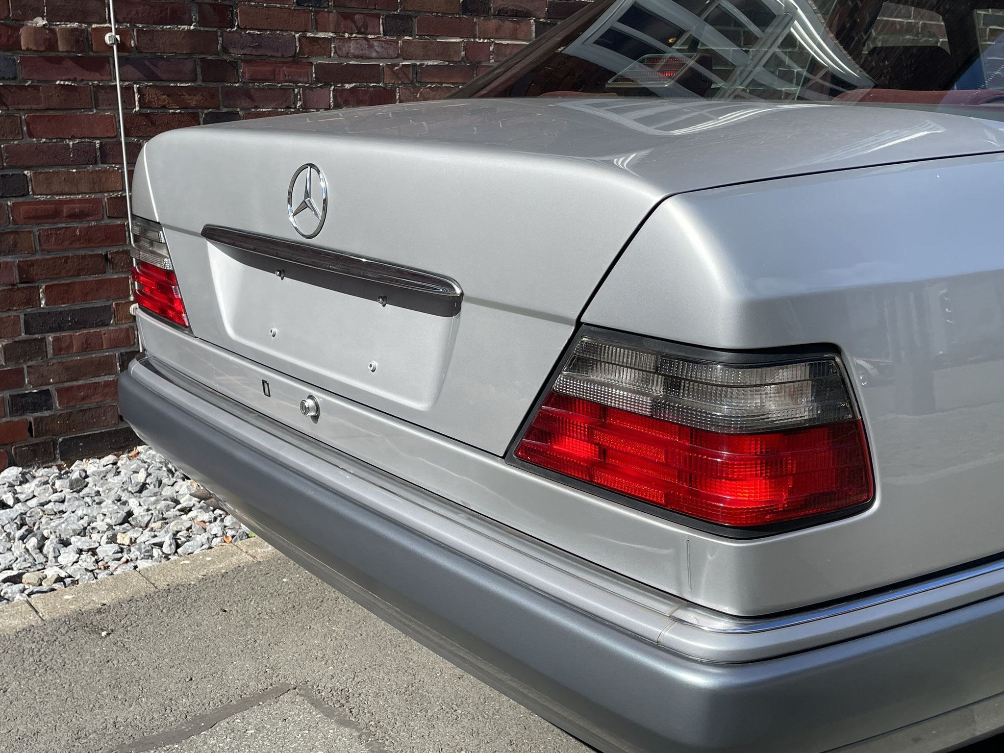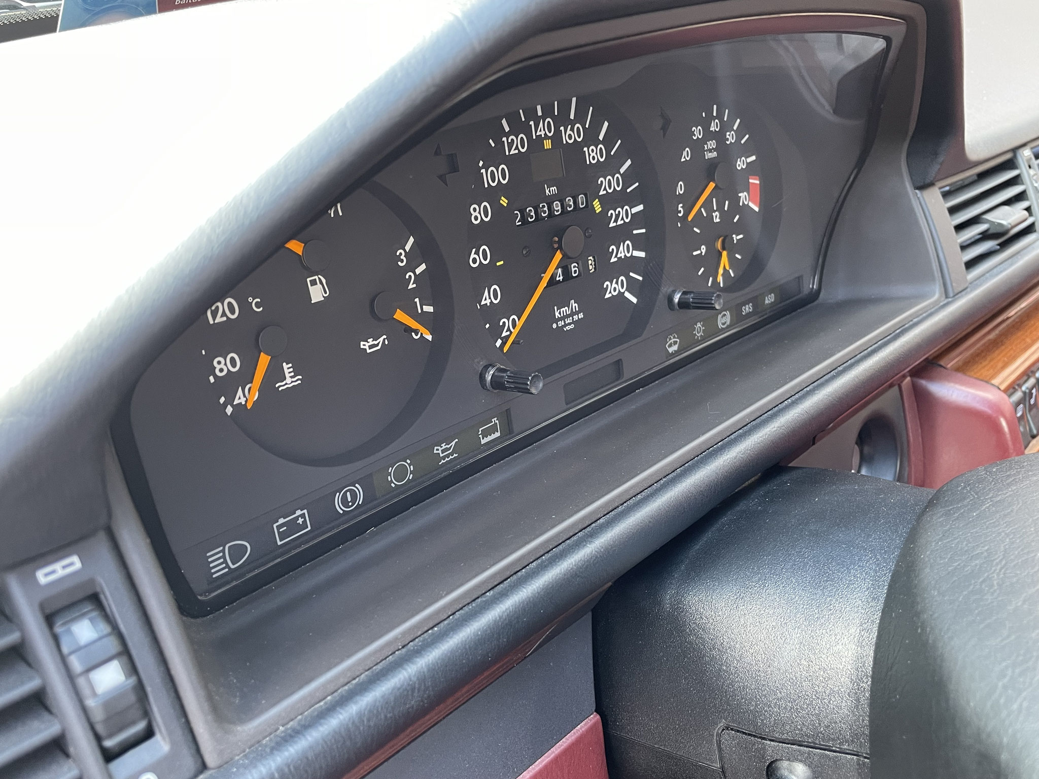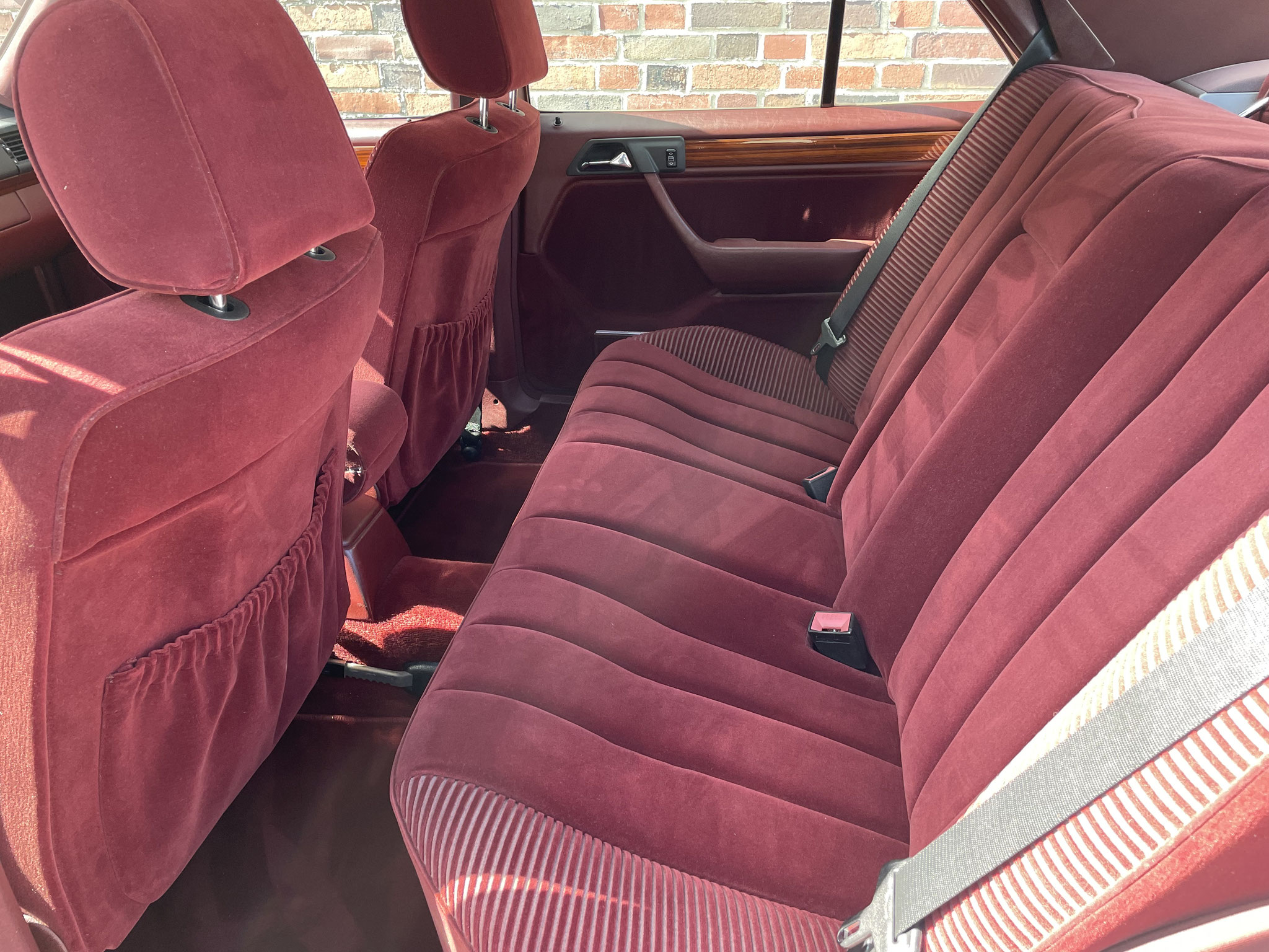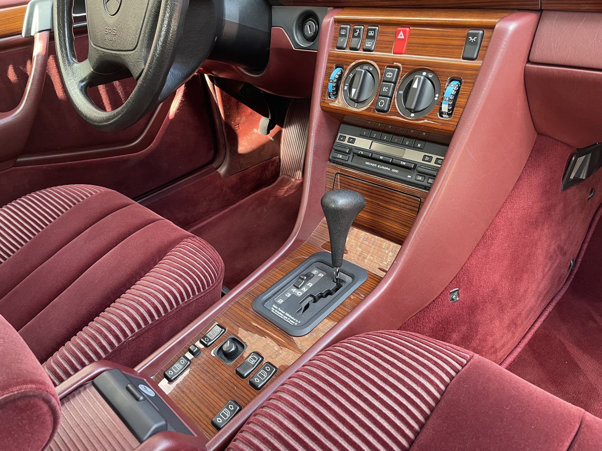 – Von außen dezent und klassisch in Brillantsilber, präsentiert sich dieser 124er von innen außergewöhnlich und selten mit einer roten Velourausstattung.