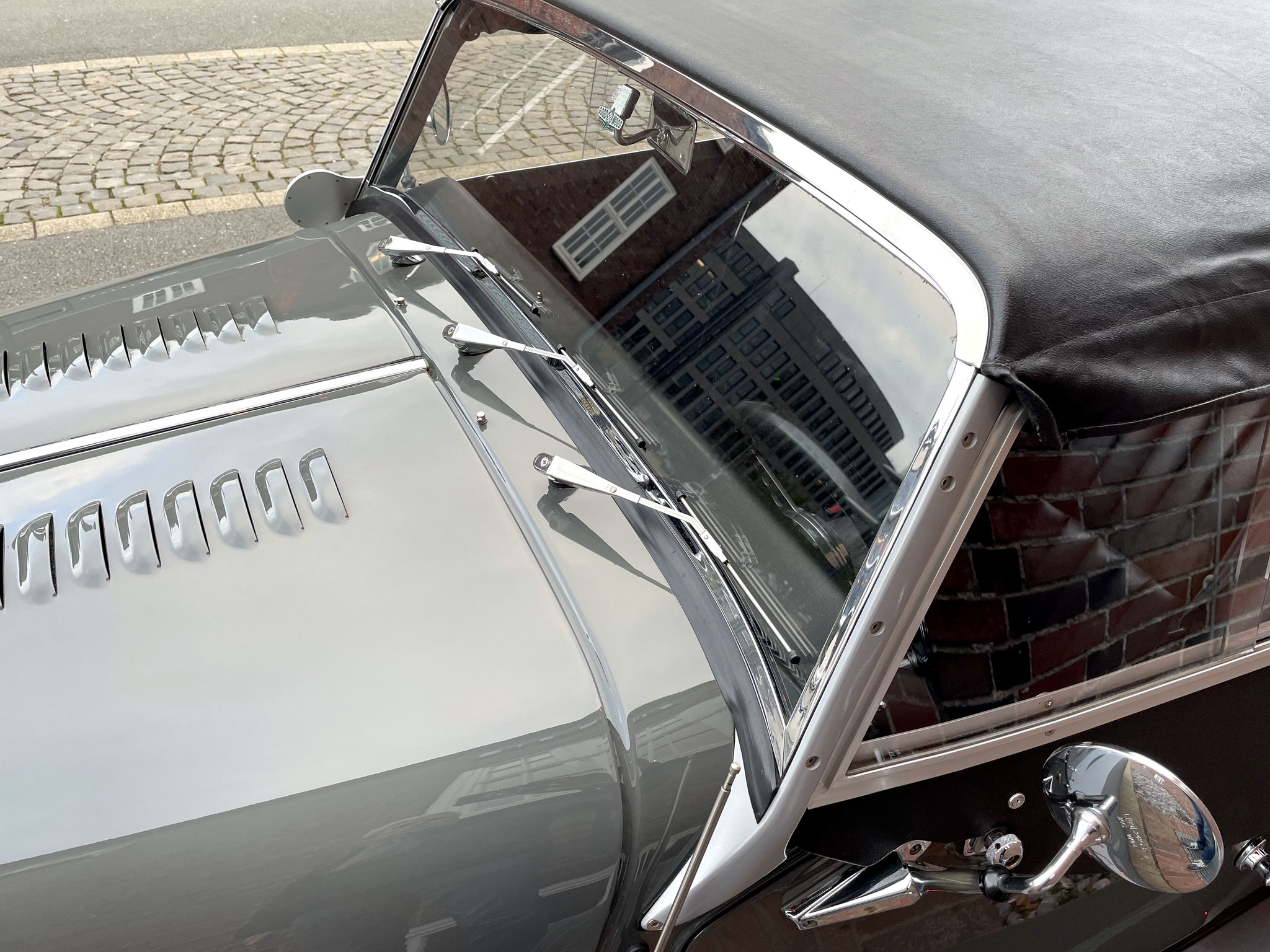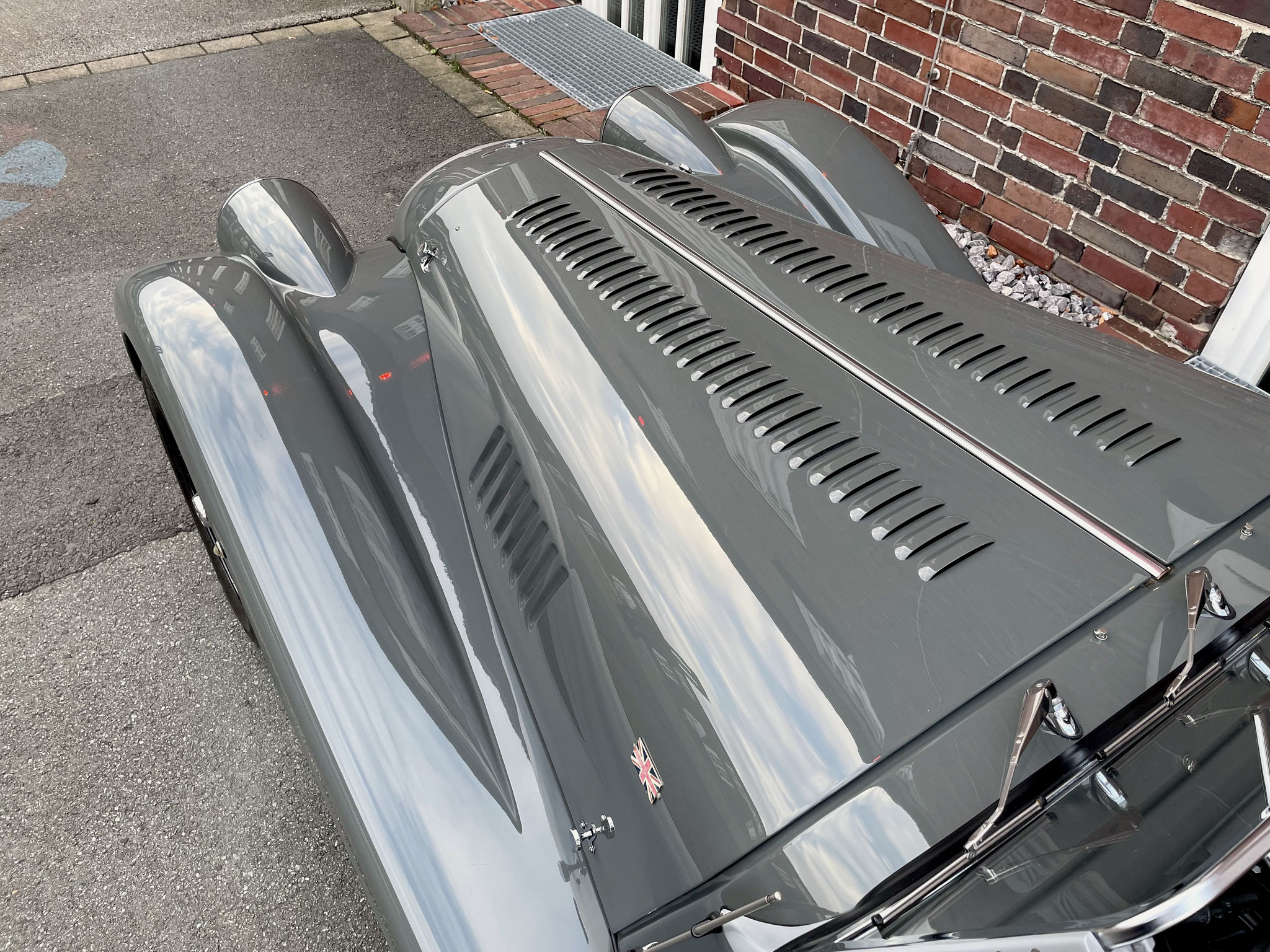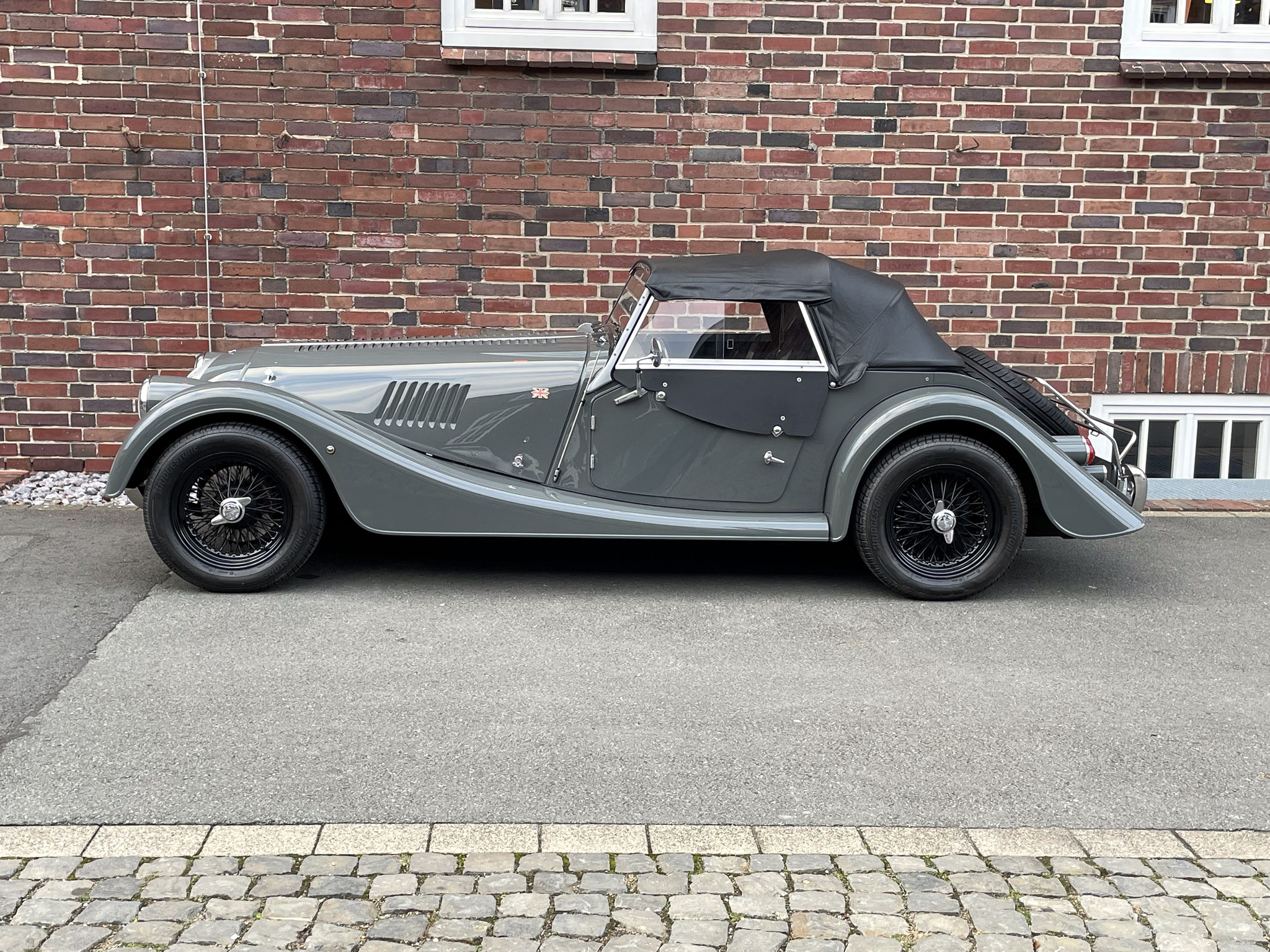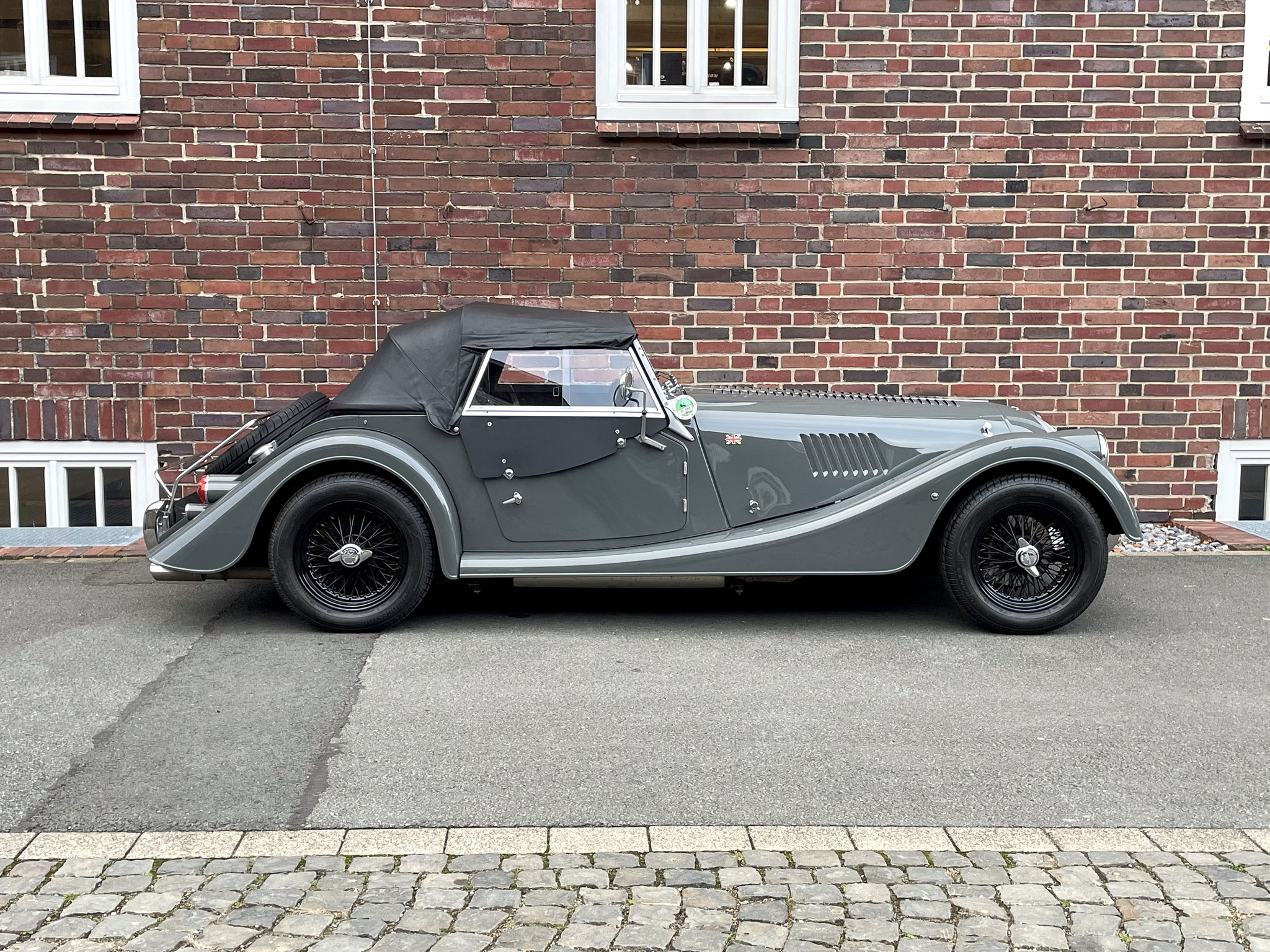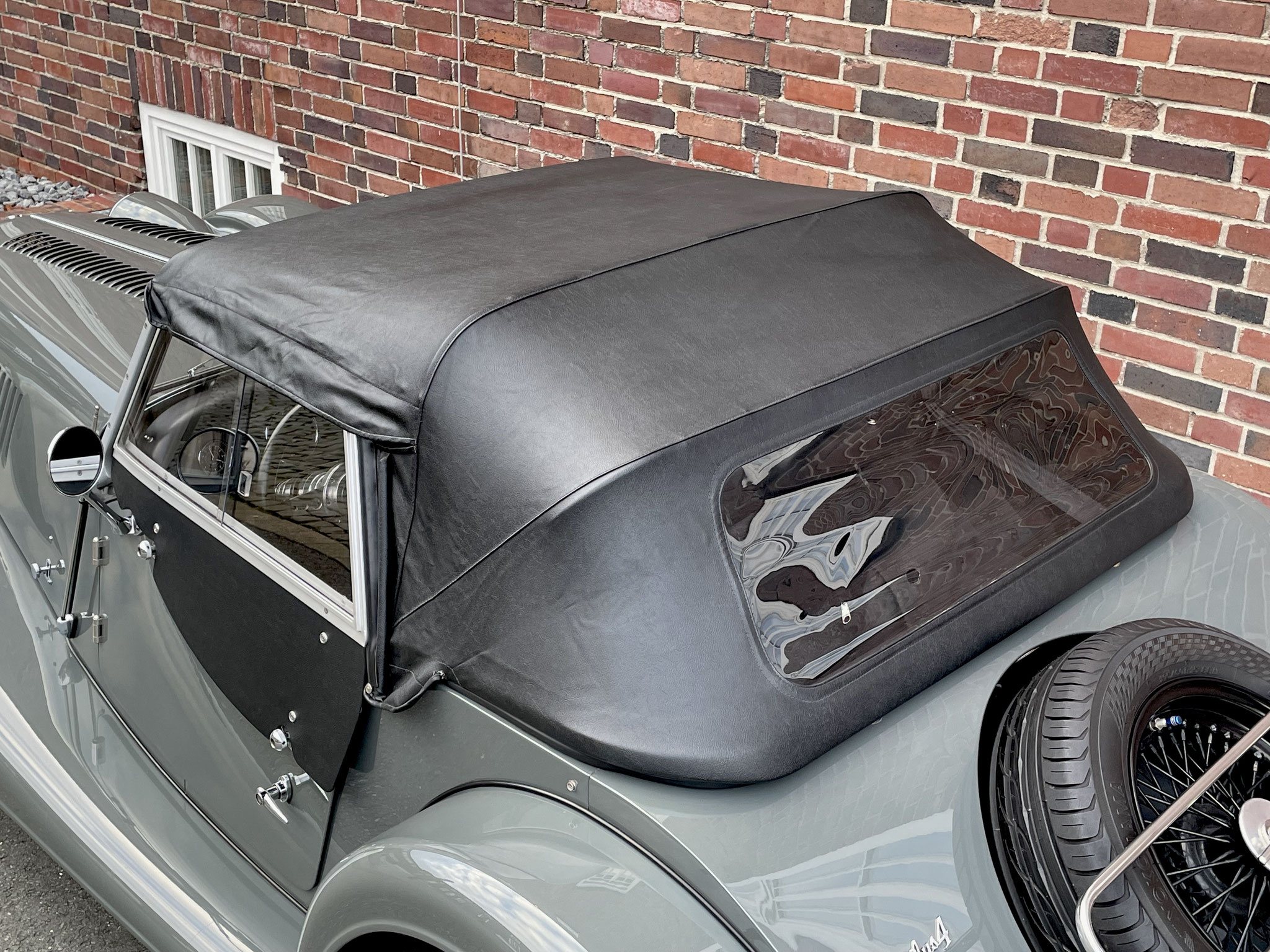 – Bei der Neuwagenbestellung dieses Morgan Plus 4, hat der bis heute erste und einzige Besitzer ein gutes Händchen bewiesen. Die Lackierung in schlichtem Sportgrey