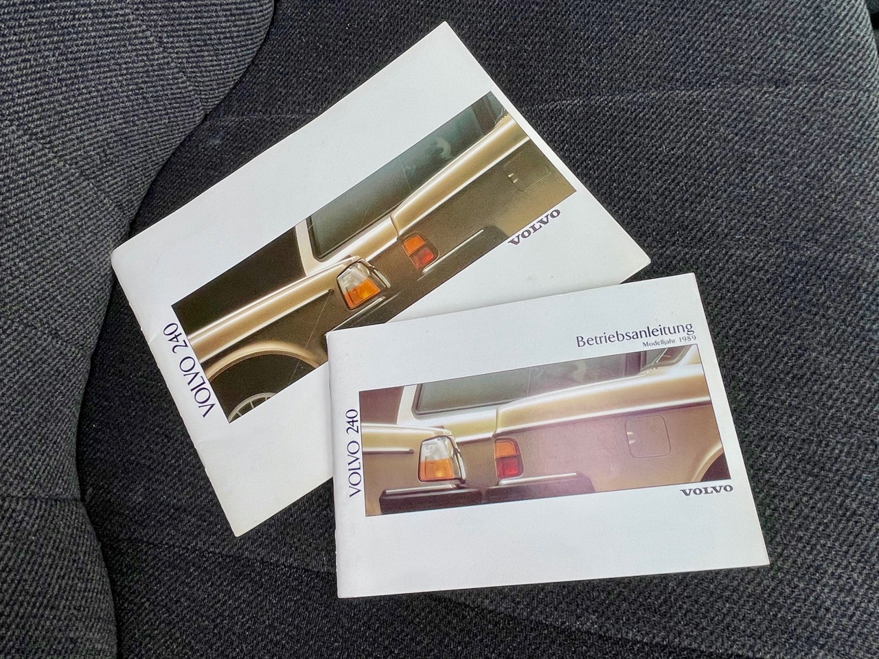 Betriebsanleitung, ein Volvo-Verkaufsprospekt und einige Werkstatt- und Teilerechnungen.