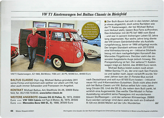 Im Februar 2013 erschien der Händler-Check in der Oldtimerzeitschrift Autobild-Klassik.